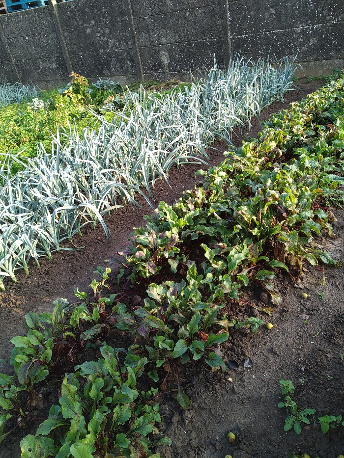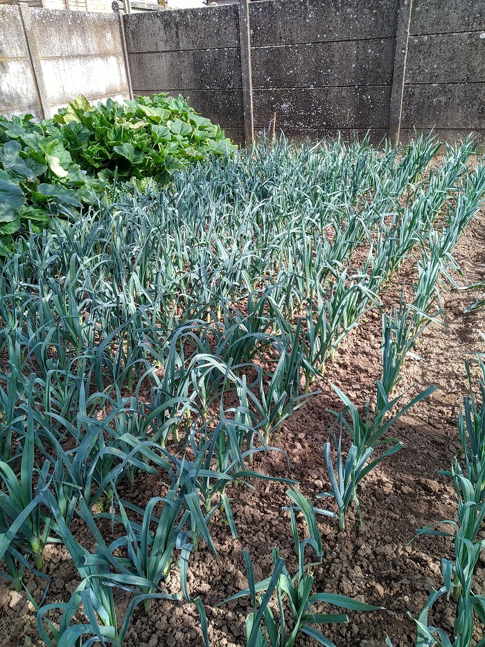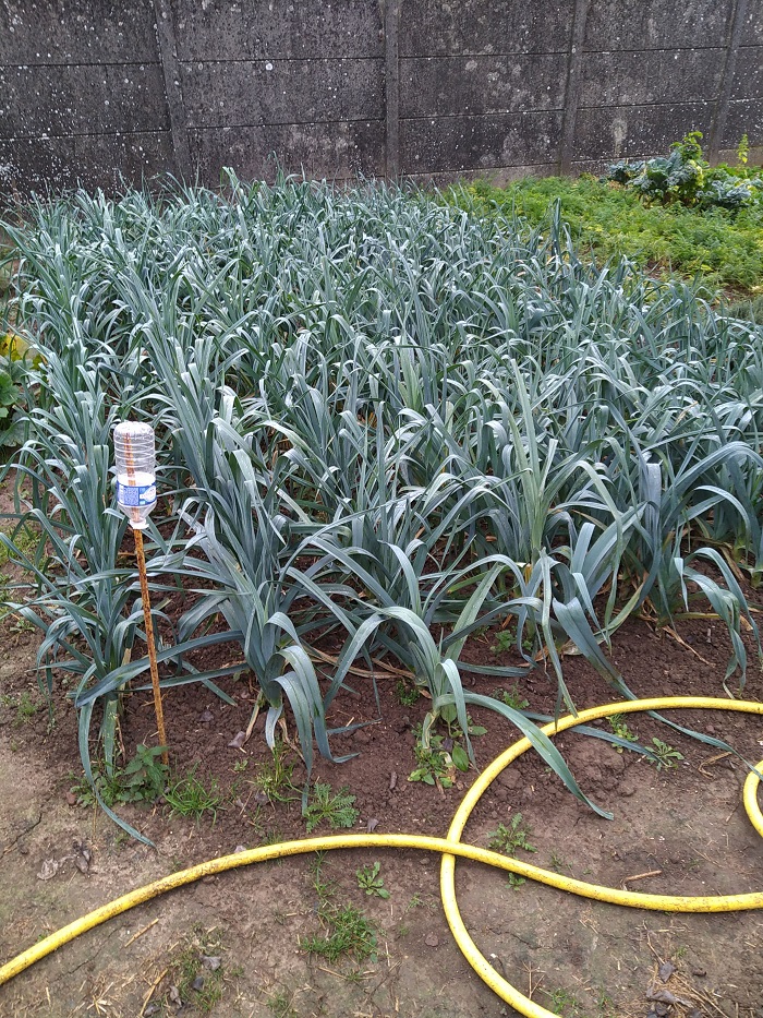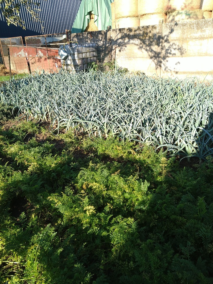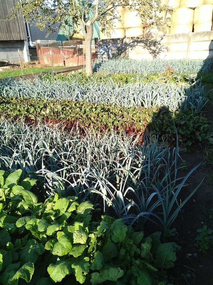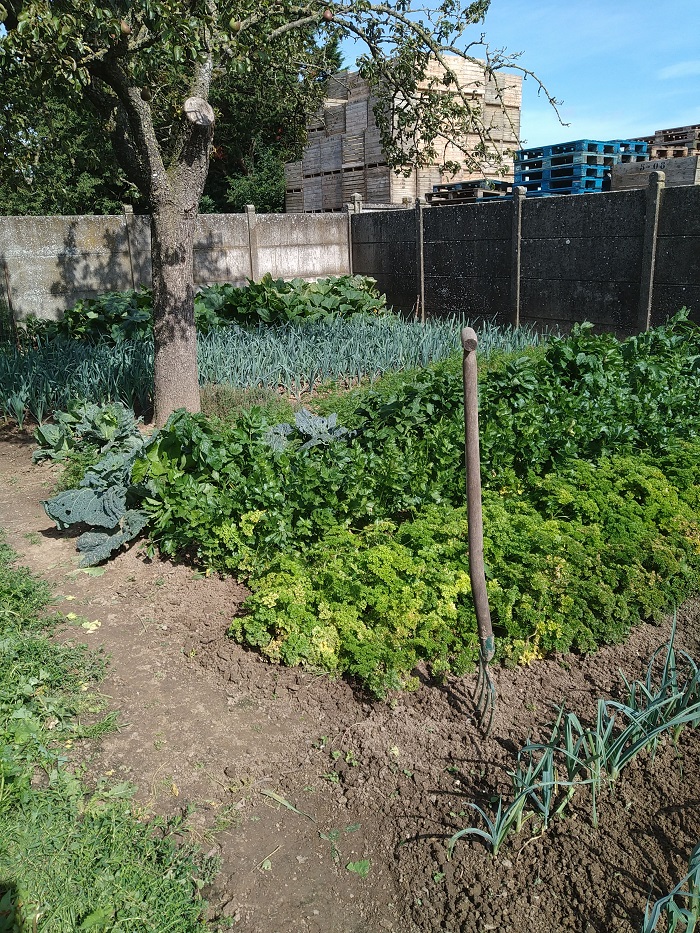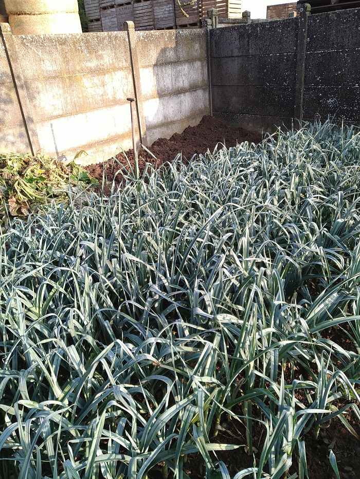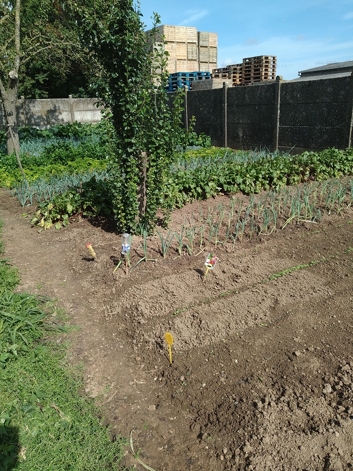 Petit potager après recoupe du feuillage poireaux et binage :sleep: