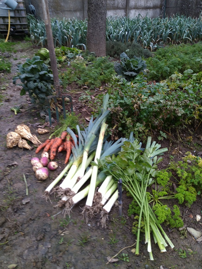 Dans le grand potager une petite récolte :D