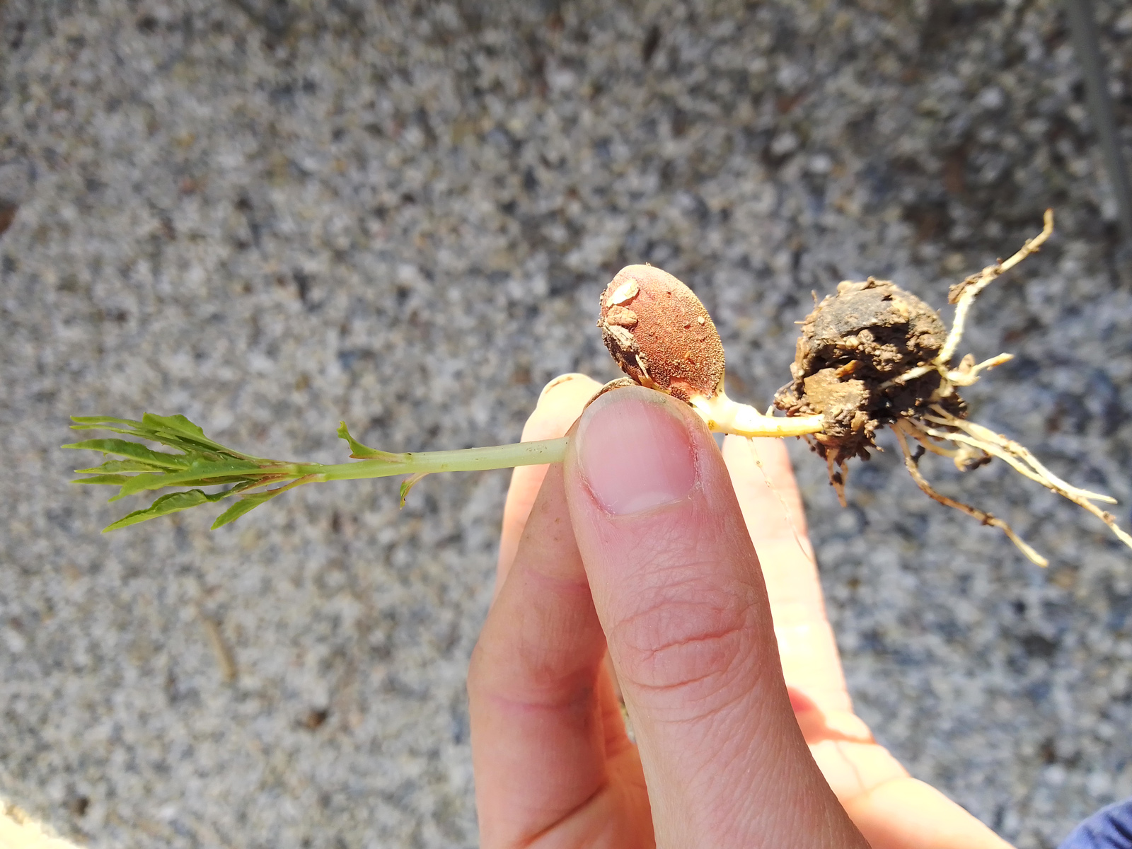 L'amande est en fait les deux cotylédons qui sortent de terre