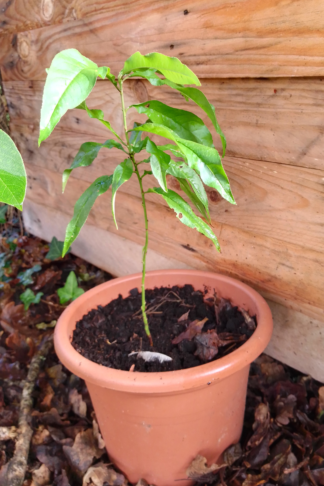 En avril, j'ai arraché cette plantule du potager. Ne sachant pas si c'était intéressant, j'ai mis en pot. La voilà fin septembre. Est-ce que ça pourrait être un pêcher?