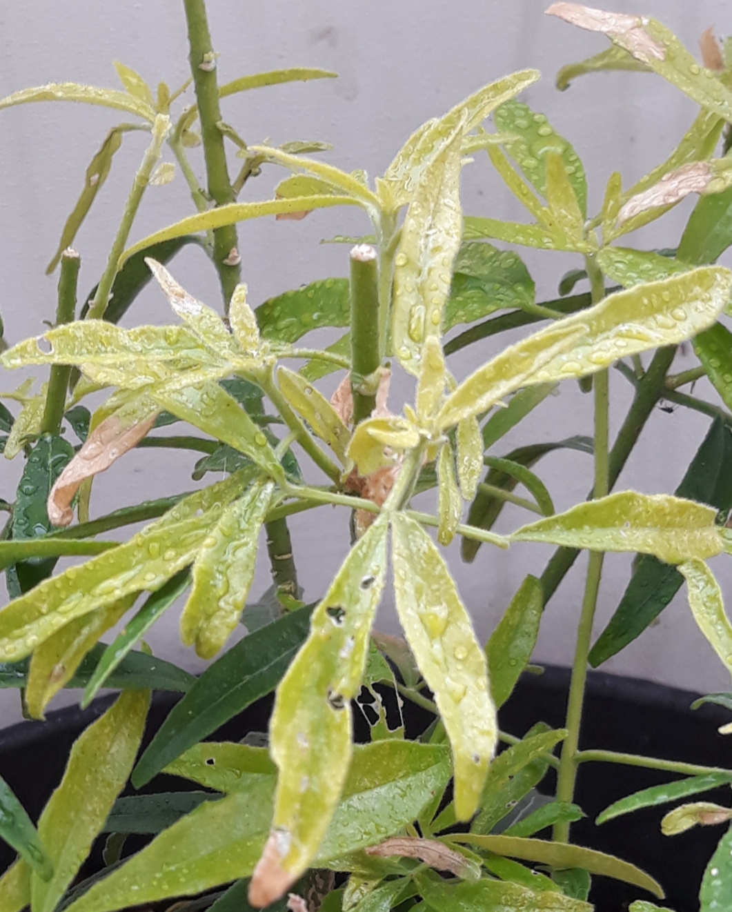 Ce printemps j'ai fait l'acquisition d'un choisya goldfinger. Tout allait bien. Rempoté dans un mélange classique terreau et terre végétale. Drainage dans le fond du pot. Exposition ouest/sud-ouest.
