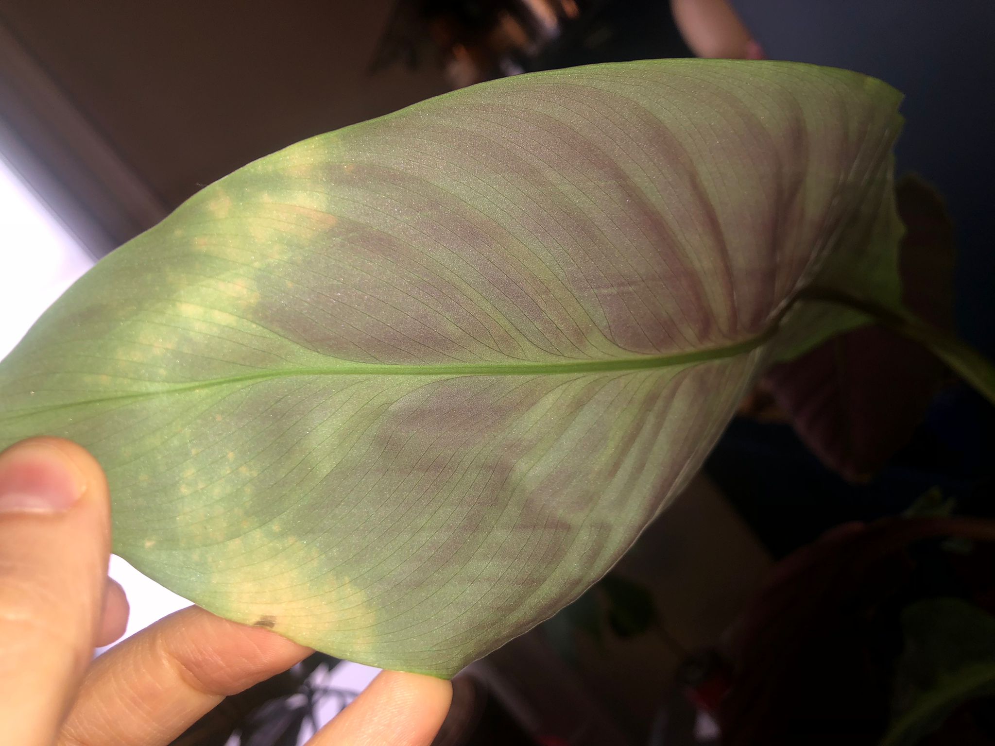 Ce que je peux vous dire c'est qu'effectivement, maintenant que vous le dites, je remarque que les points jaunes ne sont seulement que de ce coté. C'est à dire en direction fenêtre et en direction du croton... peut-être que vous avez raison... je vais éloigner l'autre plante pour voir.
