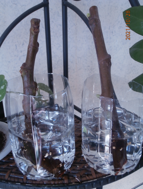 Étant une grande fan de figues j'ai décidé de tenter la multiplication des trois variétés de ma Maman, une variété de figue blanche (que je vais marcotter, je sais faire), et pour le plaisir de la "difficulté" j'ai voulu tester le bouturage des deux autres (un figuier "gris" et un violet)...