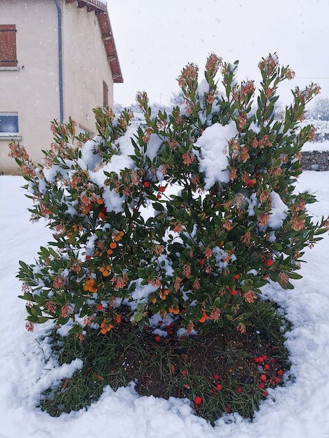 c'est bien tombé chez toi , l'arbousier est magnifique avec ses boules rouges . c'est trop bôôô .
