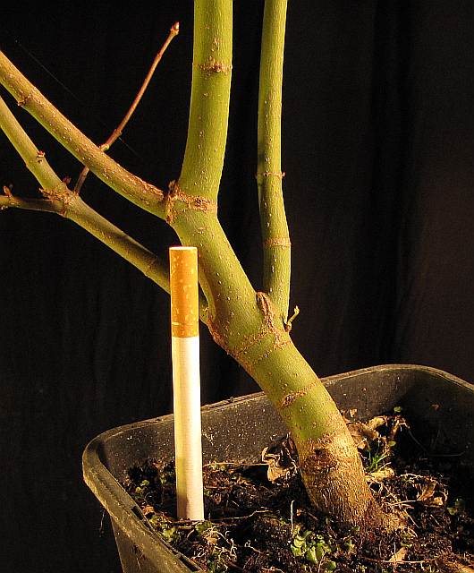 "les boutures d'été peuvent rarement prendre si elles font plus de 2-3 mm, et les boutures d'hiver, outre le fait que le taux de réussite est beaucoup moindre (beaucoup), elles non plus ne peuvent pas être très grosses."