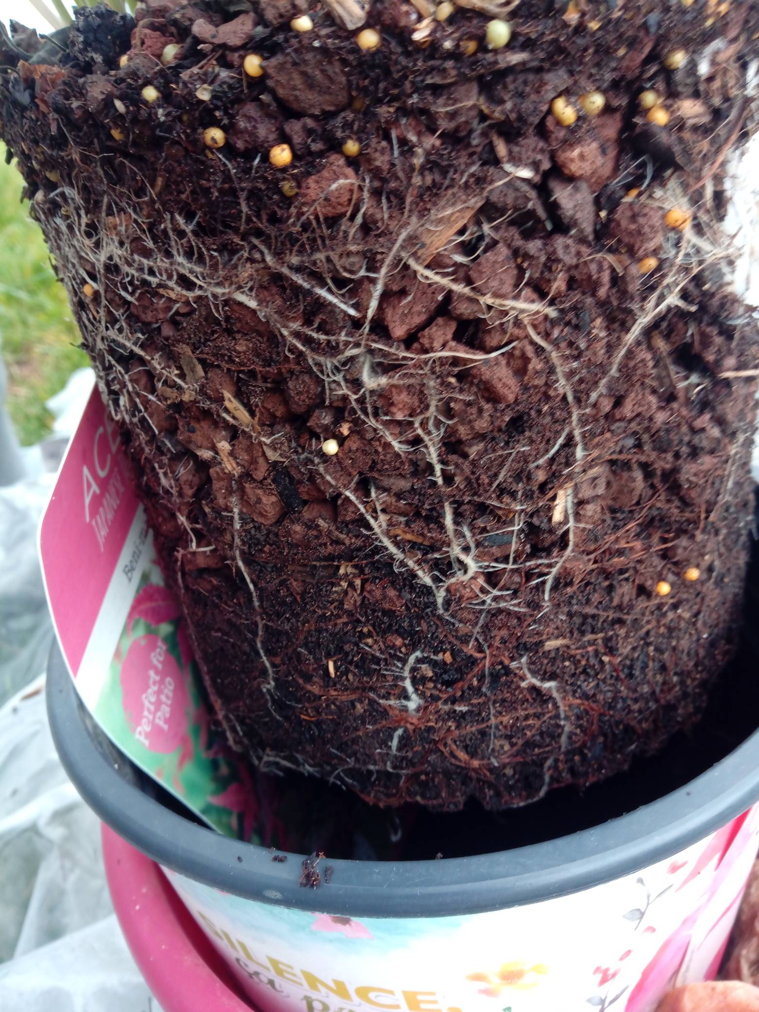 Au fait, mon Acer 'Ryusen' acheté £10 (env. 11.50 €) en avril 2015 en Angleterre ne comporte aucun point de greffe. Je doute qu'il ait été reproduit par graine (auquel cas, en outre, il ne pourrait pas "légalement" porter le nom d'un cultivar identifié),et comme le marcottage aérien me semble très peu, voire pas utilisé en pépinière, j'en déduis qu'il s'agit d'un plant issu de bouture. De toutes façons, marcotte ou bouture, c'est kif-kif.