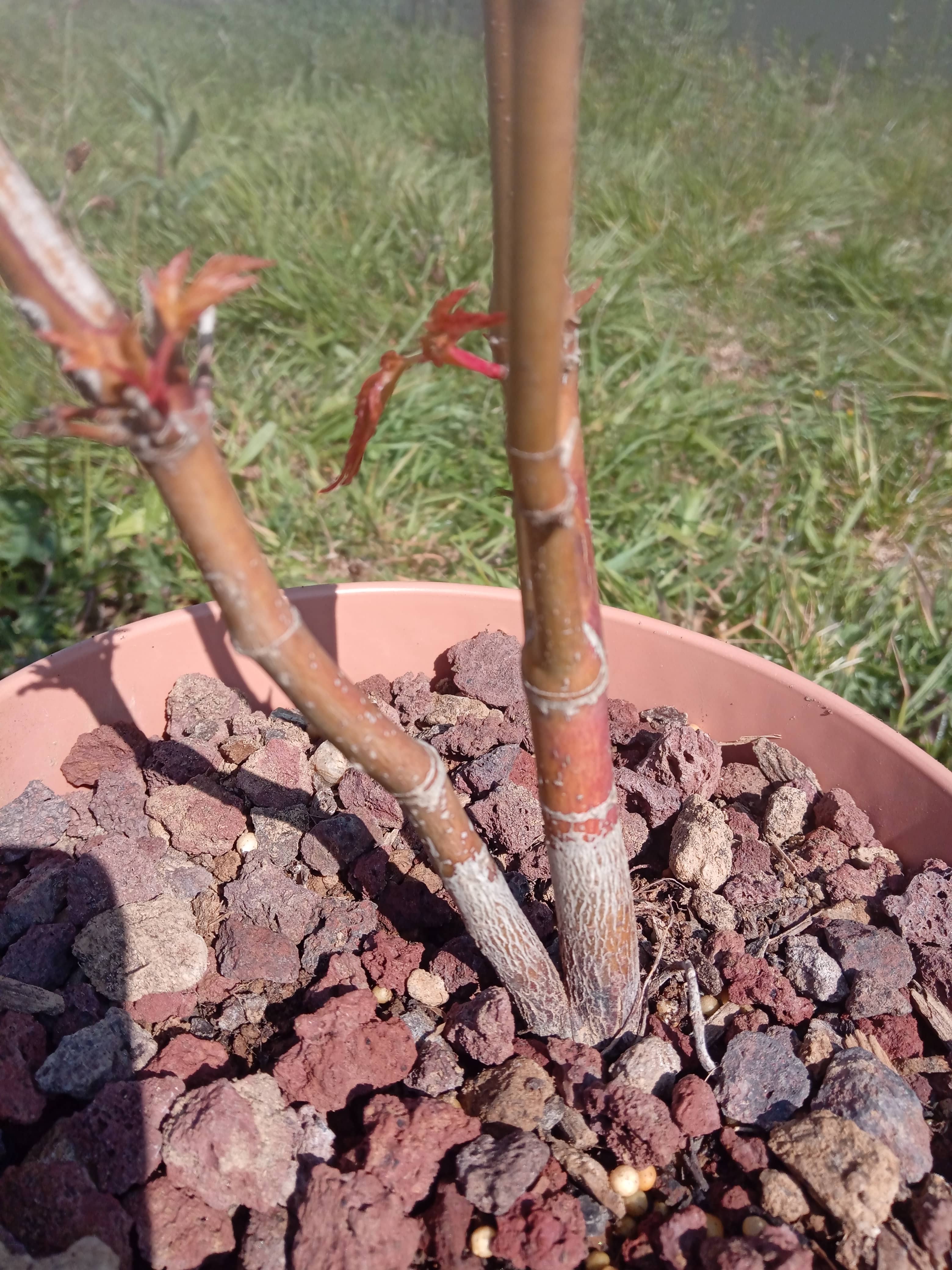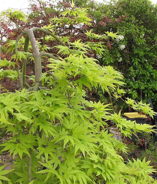 Par contre, plus difficile avec la plupart des dissectums qui, de toute façon, risquent en effet de péricliter puis mourir sur leurs propres racines au bout d'un ou deux ans (à l'exception de 'Seiryu' : le mien, 1m60 de haut n'est pas greffé).
