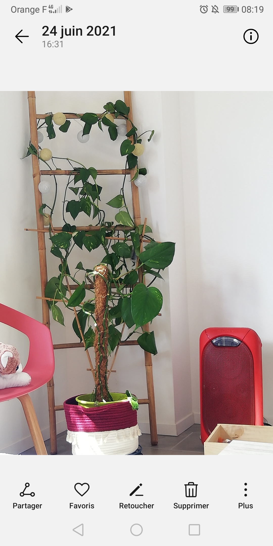 Ma grand mère m'a offert une plante il y a 2ans. je ne sais pas le nom. J'ai essayer de regarder sur internet. Ça pourrais être une pothos. Au début elle été dans mon appartement pleine de feuille très jolie. L'année dernière j'ai déménager chez mon copain elle a mis plusieurs mois à s'adapter puisque elle été derrière une baie vitree et les feuilles avais tendance à jaunire.