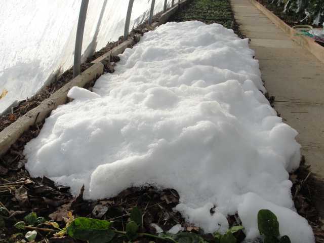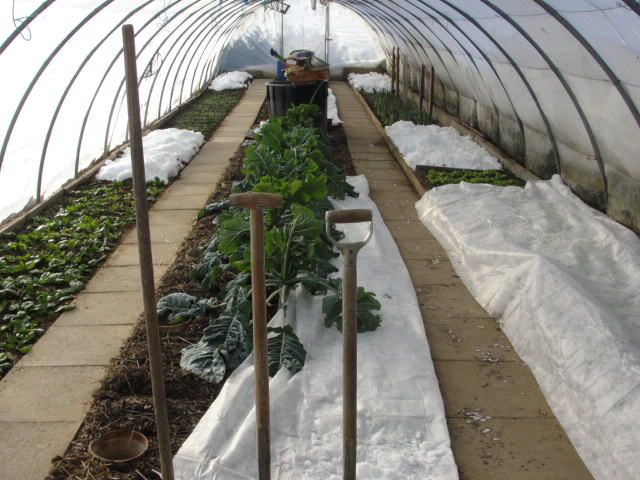ça dégage un peu la bâche ce qui augmente l'effet de serre : il n'a pas encore gelé dans le tunnel.