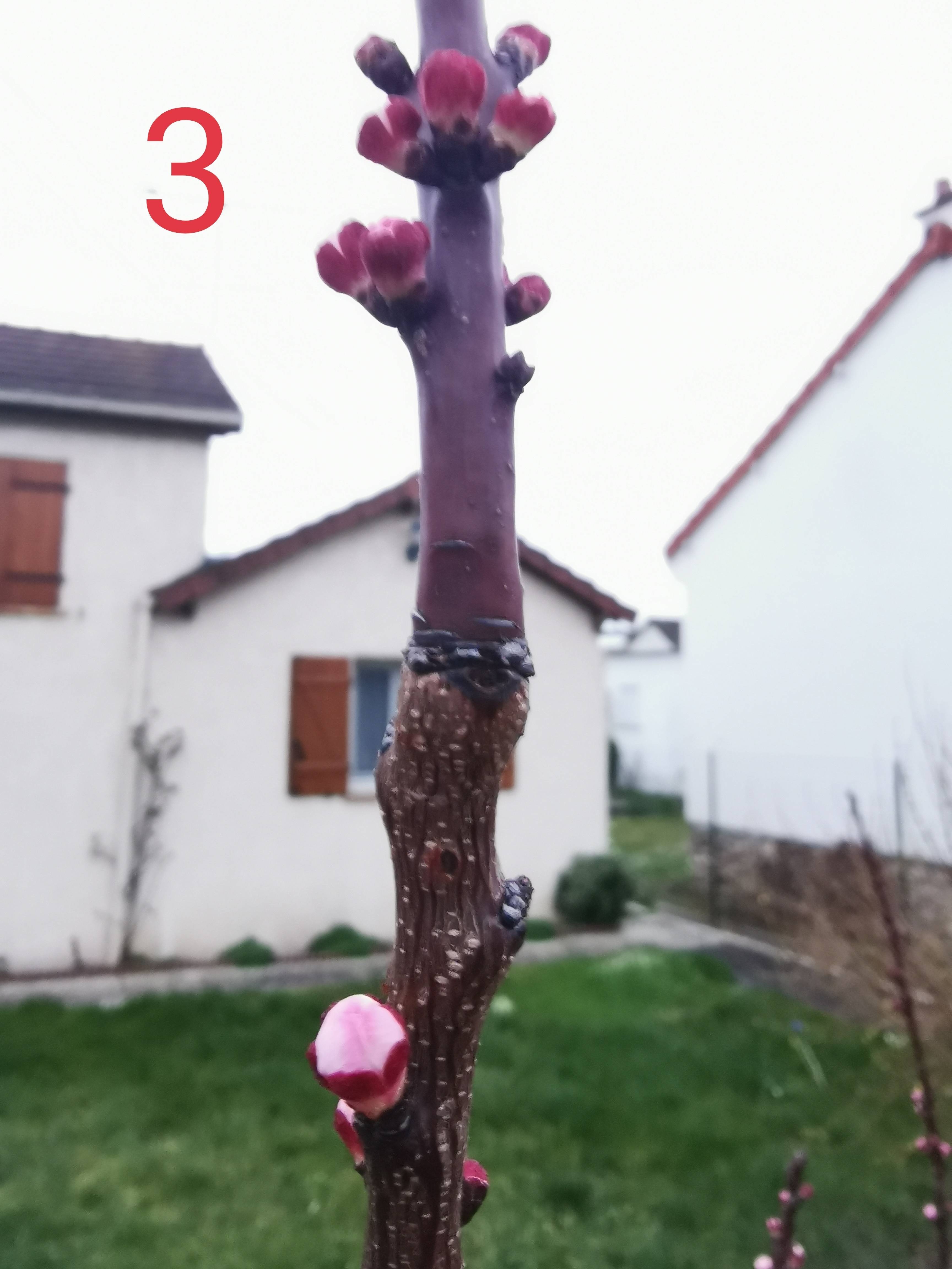 Les images sont notées en ordre 1-2-3 suivant ces raccords en montant verticalement le long de cette branche, j'imagine que vous l'auriez deviné mais cela servira surtout pour que vous puissiez me désigner l'endroit où couper (si possible) maintenant ou cet été !