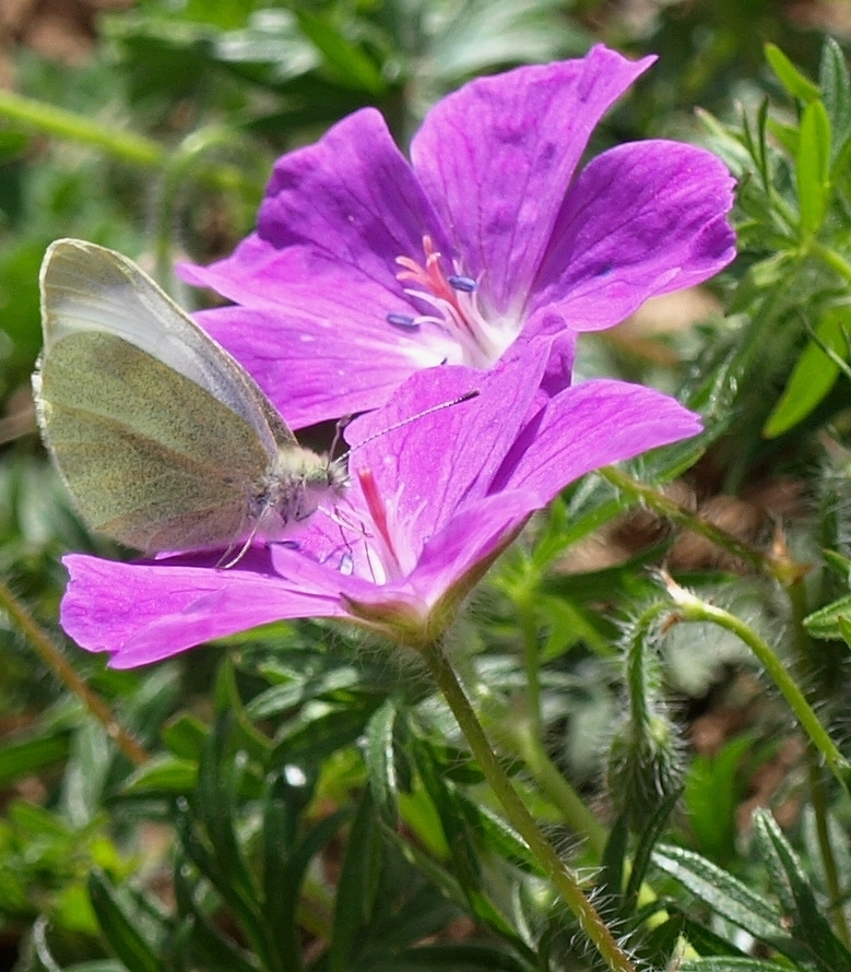 Pieris rapae, Piéride de la rave sur Géranium Johnson's blue