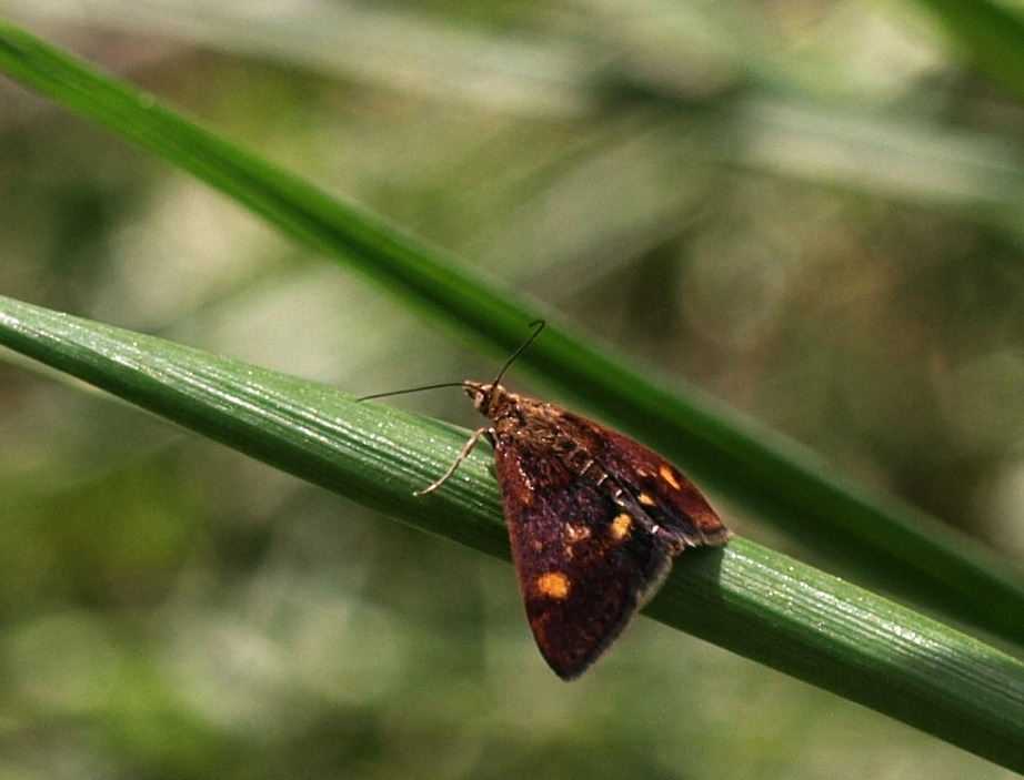 Pour Pyrausta aurata, pas évident de la repérer, elle est si petite !