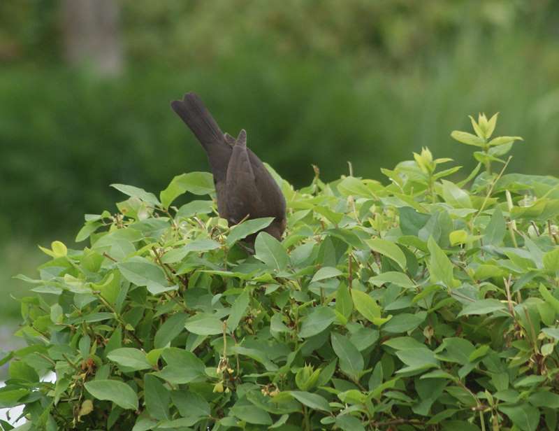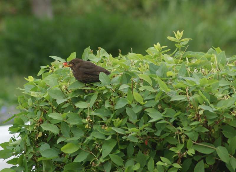 Le merle ou la merlette ( ? ) est plus douée que moi pour reconnaître l’arbre à ses fruits !