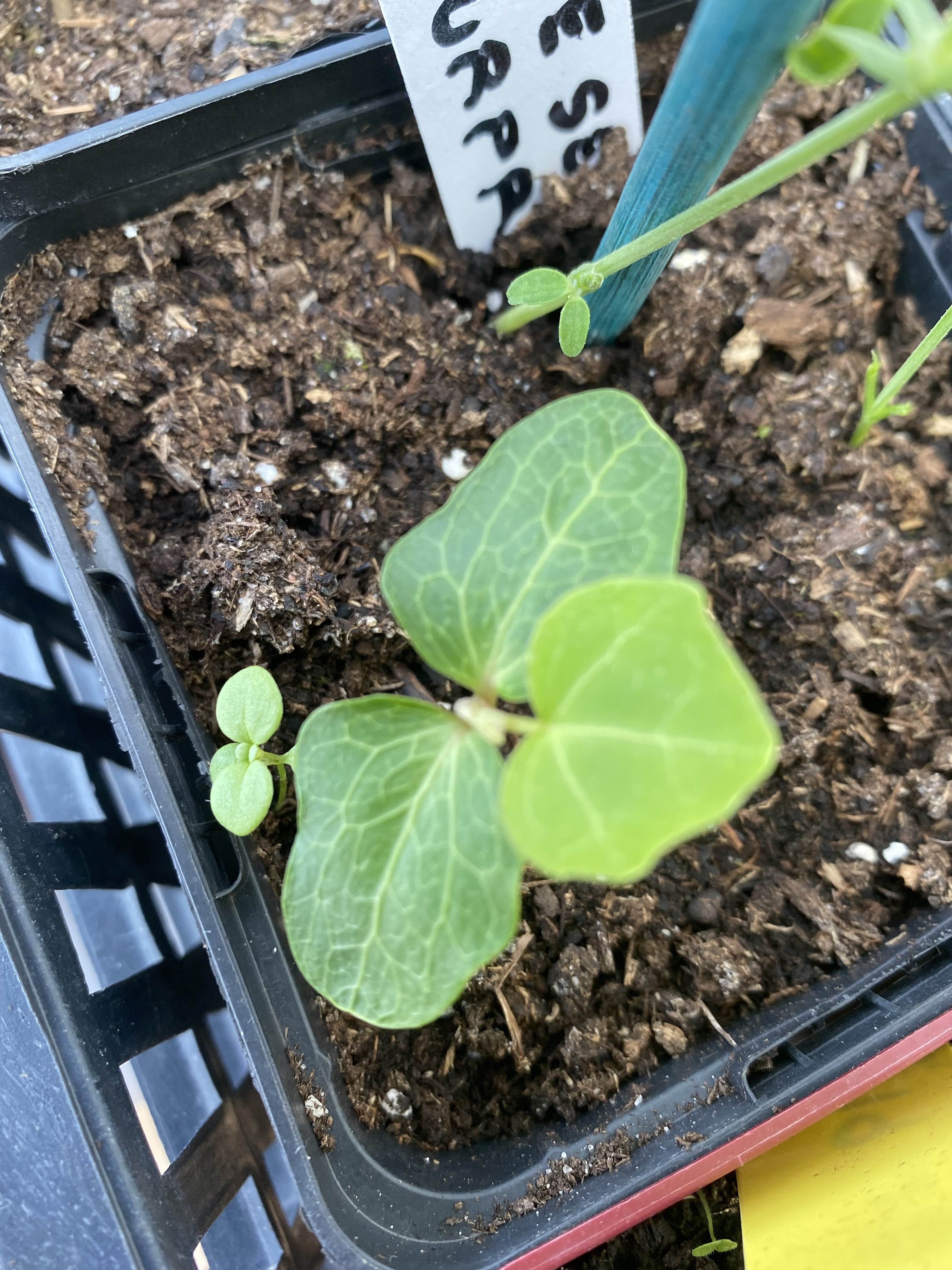 Dans un semis de Pois de senteur cette plantule est venue se balader. Un genre de lierre ou quoi ???
