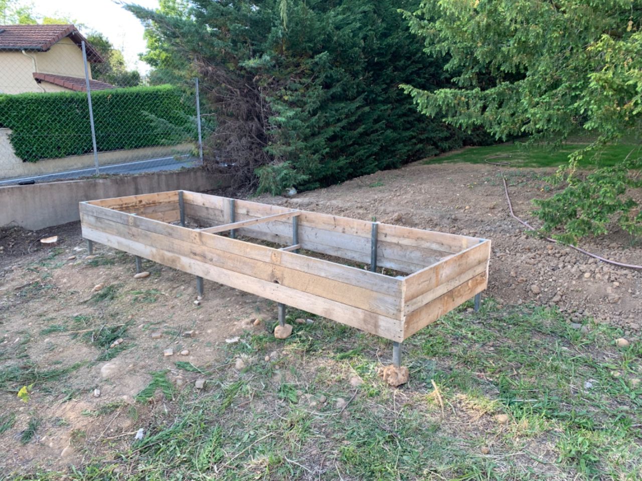 Ils sont sur des piquets en plastique recyclés et j'ai ajouté un delta MS en périphérie pour que les planches ne pourrissent pas trop vite.
