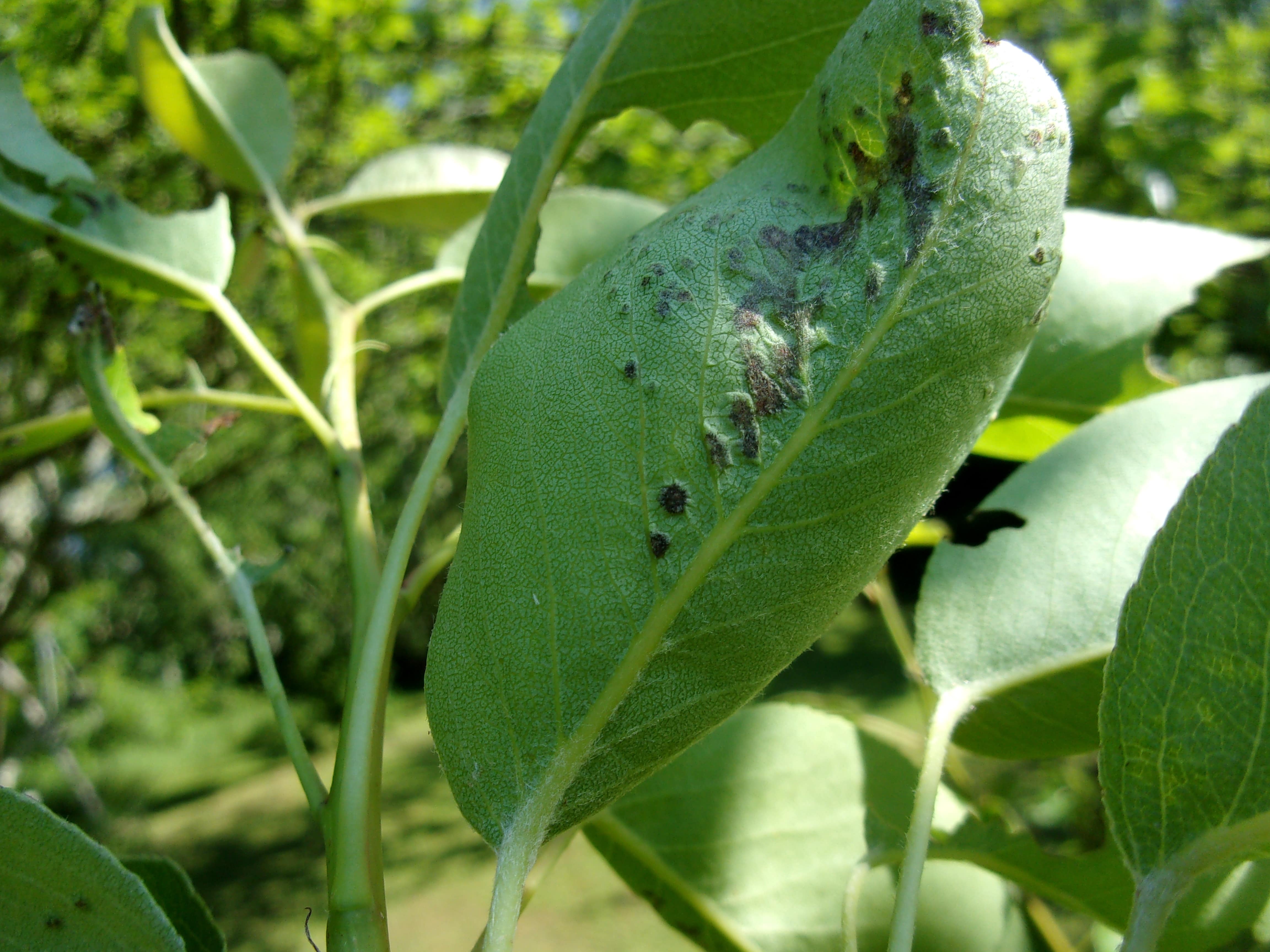 Sur les photos que vous avez posté, il y a différents problèmes à minima chenille (photo du haut, elles peuvent être bien cachés et assez petites), érinose du poirier sur la seconde photo (ne cherchez pas vous ne pourrez pas voir le responsable qui est trop petit.) Sur la 3e photo, ça fait plus maladie nécrose qui finissent en trou. ça peut aussi être une réaction à un traitement si vous avez tenté quelque chose, voir même une réaction physiologique (moins problable)