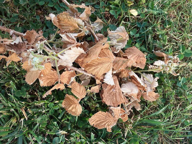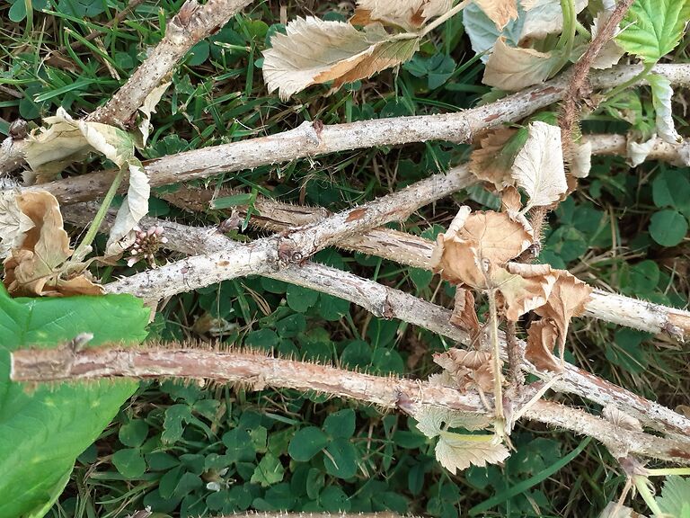 Les canes qui doivent fructifier cette année ont commencé à se dessécher lentement. Cela a débuté par l'arrondi de la feuille, puis cela a gagné l'ensemble de la feuille, puis les canes.