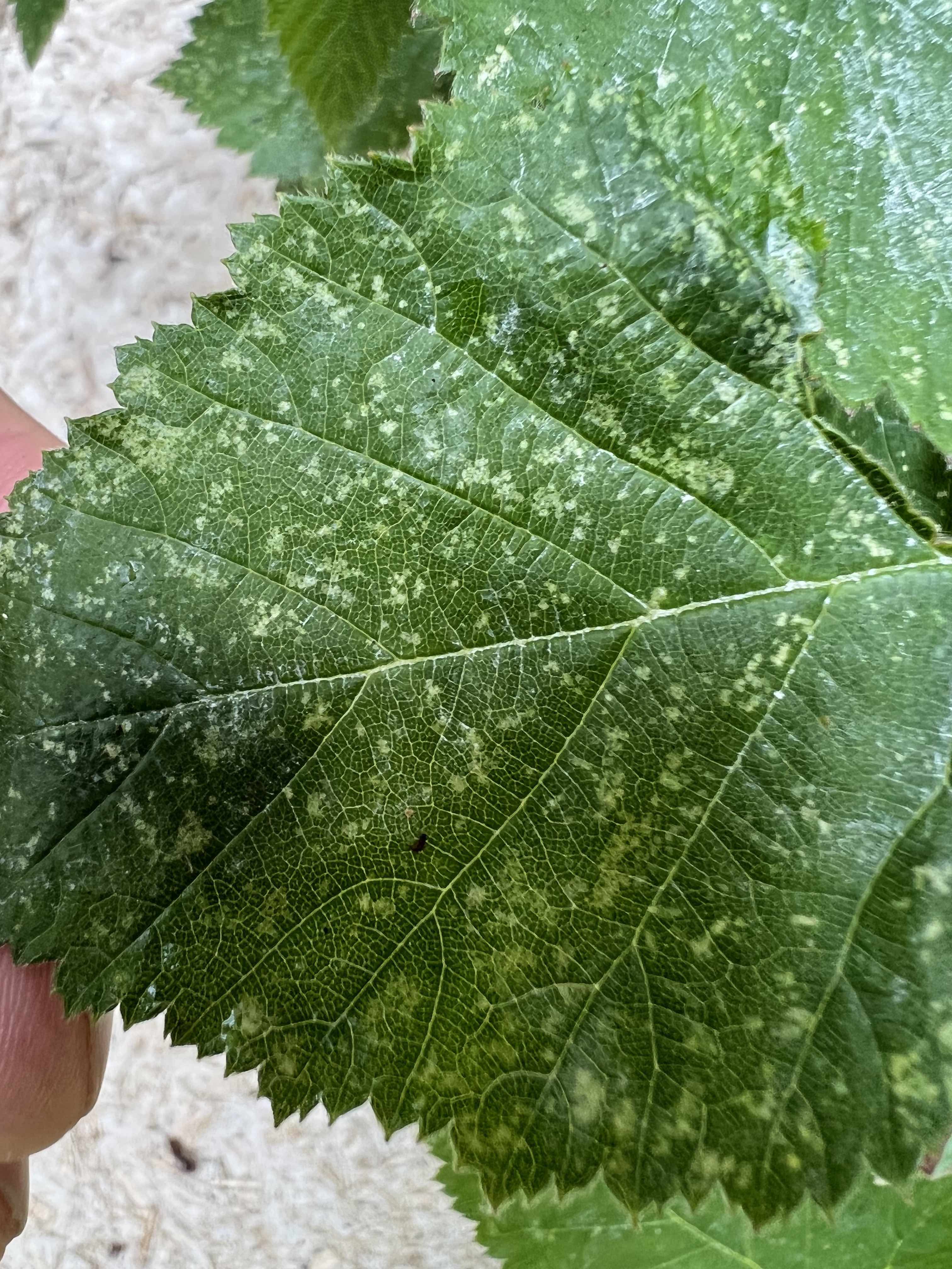 J'ai planté un petit mûrier en terre à l'automne dernier. Celui ci s'est bien développé, mais je viens de m'apercevoir que quelques unes de ces feuilles présentaient des petits points blancs très nets sur le dessus (cf pièce jointe). Connaissez vous ce symptôme et comment faut il réagir? J'y ai également trouvé de minuscules insectes blancs sous les feuilles hier. Je ne sais pas s'il y a un lien mais après pulvérisation de savon noir ceux-ci semblent ne plus être un réel problème