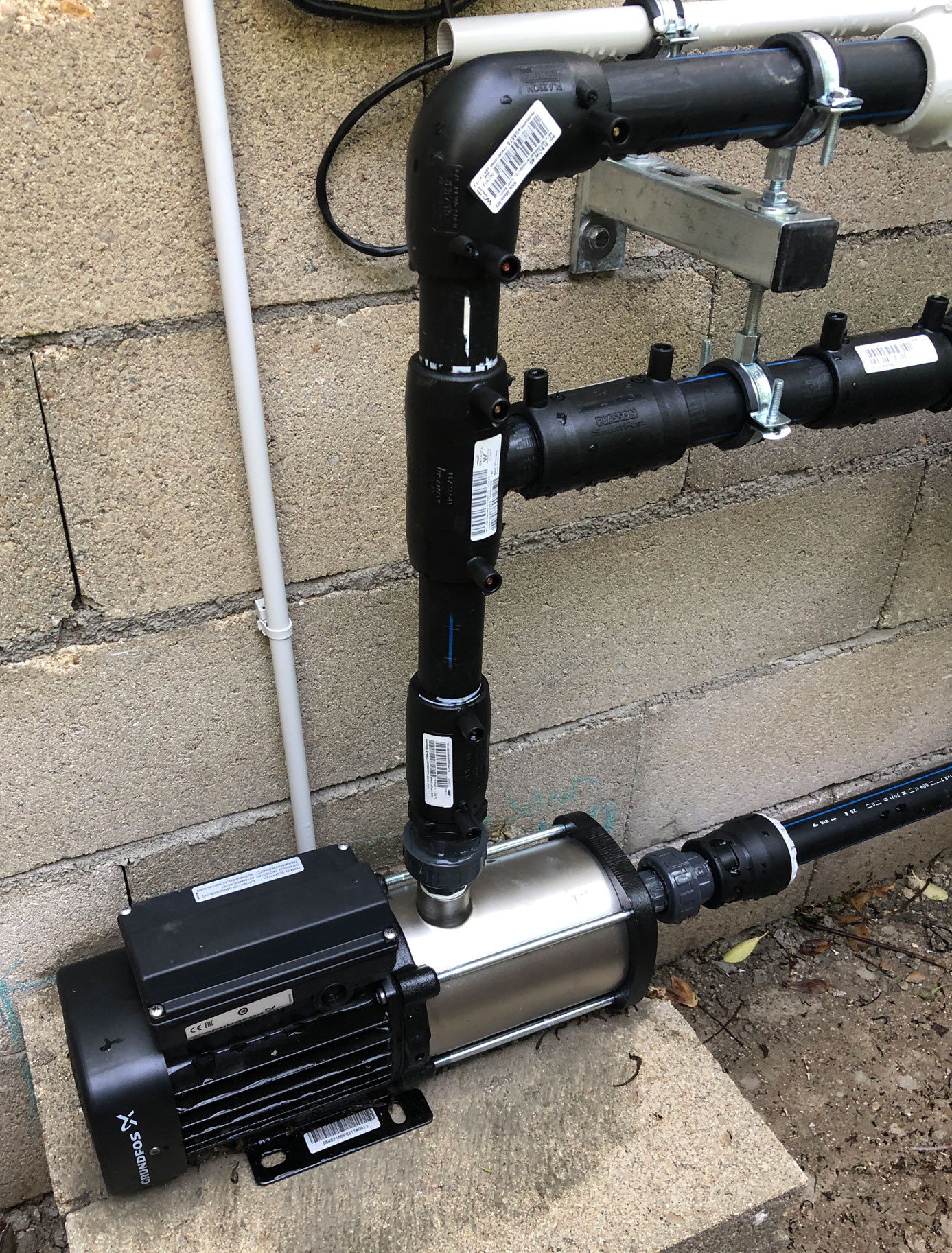 Une pompe de surface Grundfos alimentant un réseau d'arrosage enterré ; je reconnais que le prix est prohibitif, mais la qualité reste indéniable.