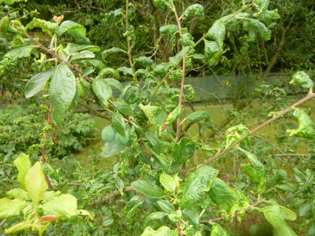 Je ne peux pas affirmer à 100% le diagnostic sur ton prunier. J’ai eu cette maladie sur un prunier salicina Burbank il y a 15 ans environ, les feuilles avaient cet aspect et le prunier poussait quand même. Autre symptôme typique, le débourrement précoce. En quelques années les branches finissaient par sécher les unes après les autres.
