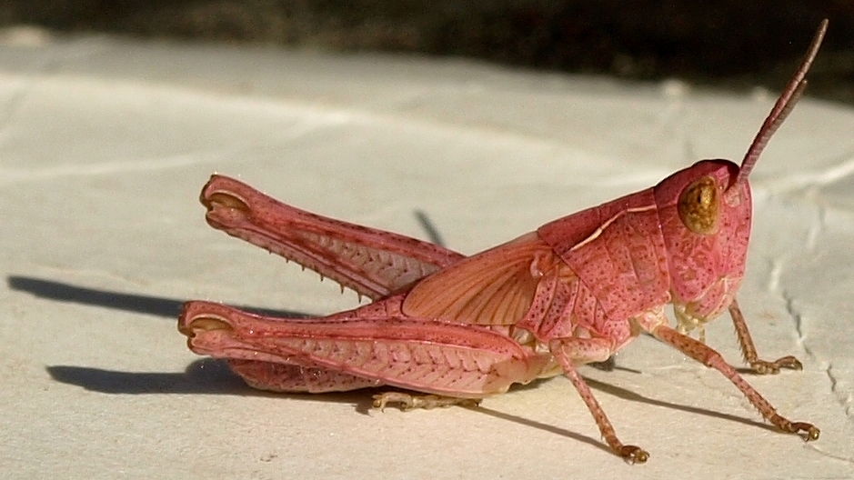 Les étonnantes couleurs de ce criquet ( que je pense juvénile à cause des ses ailes qui n’ont pas encore de nervation transversales) dénotent une certaine coquetterie
