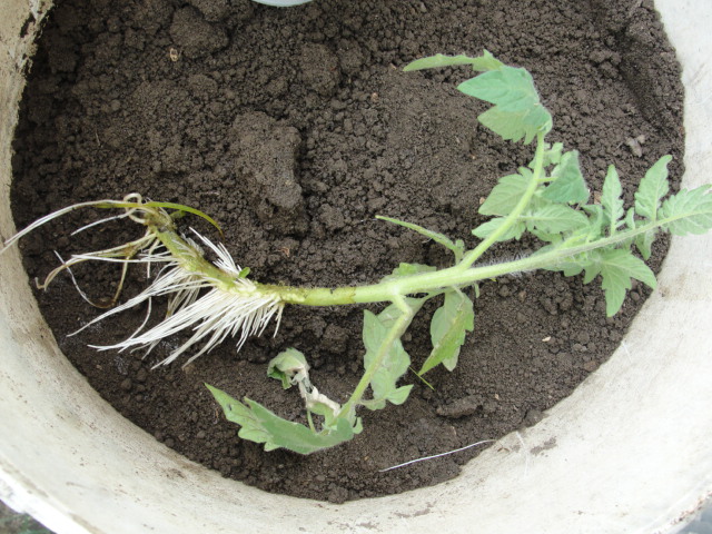Mais comme ces plants n'avaient pas été tuteurés, j'ai pu couper des branches latérales que j'ai mises à raciner dans de l'eau.