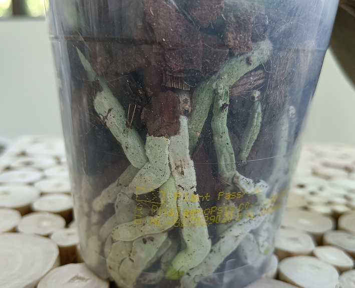 Je ne sais pas trop pourquoi certaines racines font ça par contre, peut-être (pure supposition de ma part) des écailles du velamen qui s’écartent pour mieux recueillir l’eau…