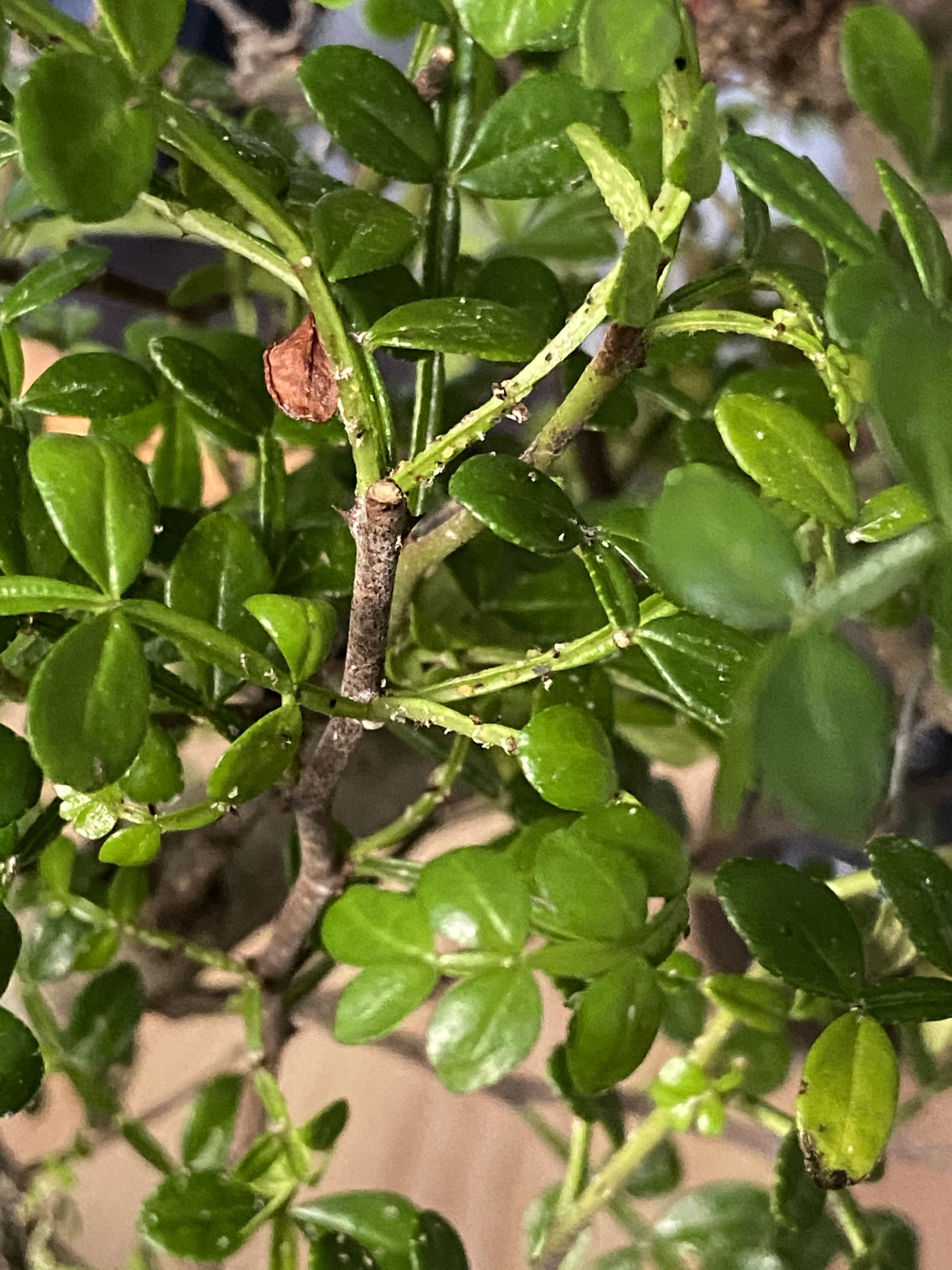 En effet mon faux poivrier du Japon est habité par des parasites, je ne sais pas de quoi il s'agit et je n'arrive pas à m'en débarrasser pour de bon. J'ai pensé un moment qu'il s'agissait d'acariens et que l'air était trop sec, donc j'ai mis un bac rempli de billes d'argiles en dessous du bonsaï pour augmenter l'hygrométrie environnante de la plante. Mais visiblement cela ne change pas grand chose, j'ai ensuite essayé de pulvériser sur les branches du bonaï une solution anti parasite à base de savon potassique. Cela semble tuer les parasites en temps mais ils finissent par revenir doucement.