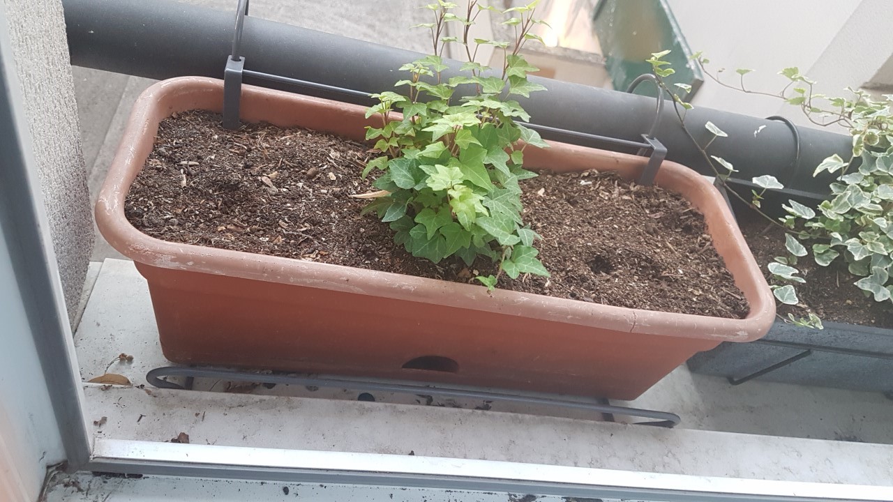 J'ai 2 jardinières, une petite dans laquelle j'ai mis du lierre ( Hedera Panache ) et une plus grande où je :pmt: .