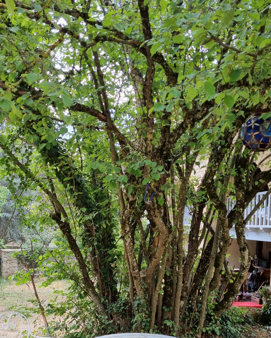 Comme indiqué dans le titre du post, le noisetier de notre jardin est plus de centenaire et il vieillit fortement!