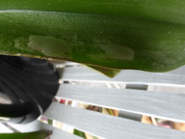 bonjour, ce matin en regardant mes orchidées, j'ai remarqué qu'une feuille était cloquée , ce ne sont pas des tâches, mais bien des grosses cloques!
