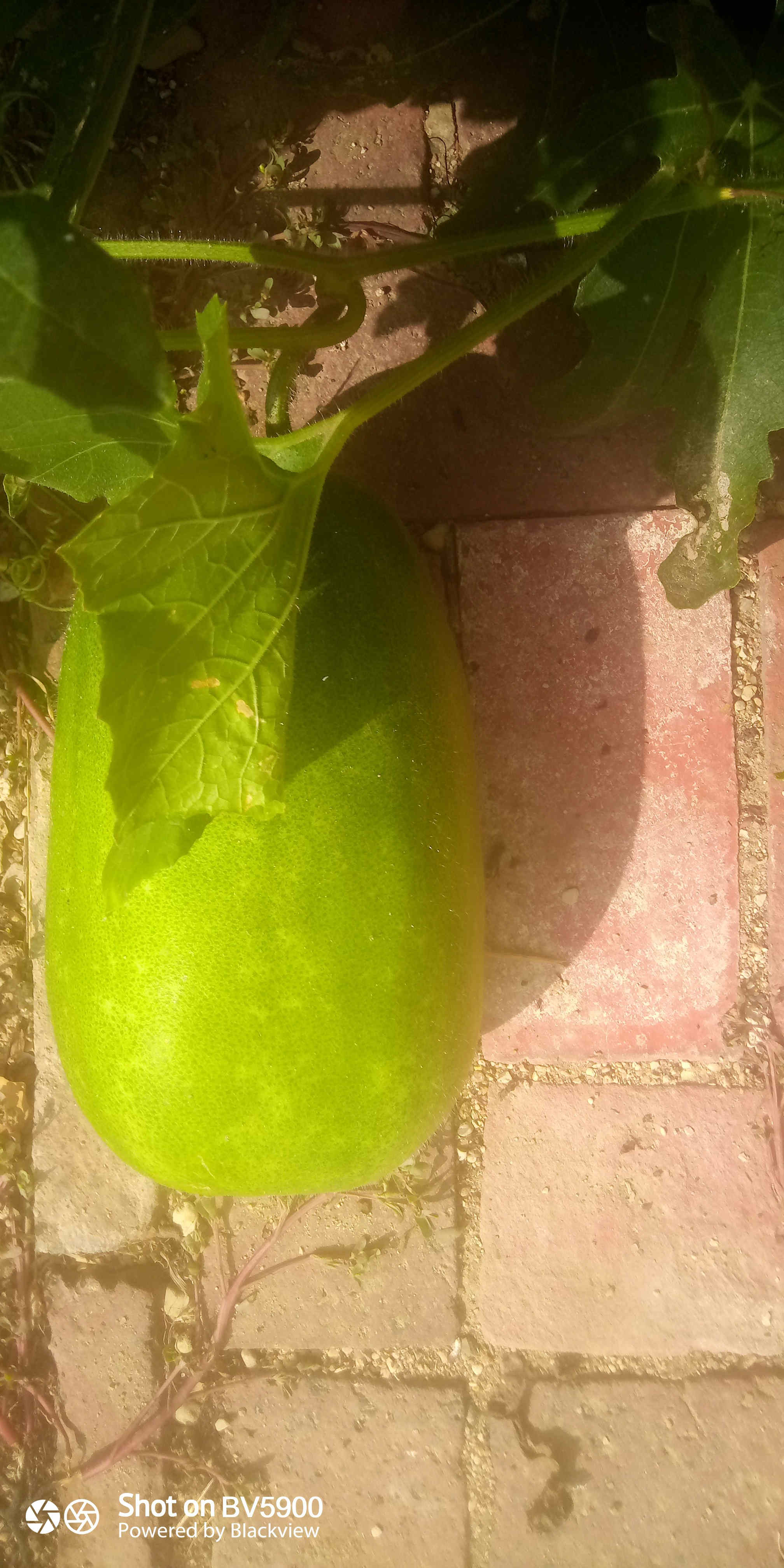 La plante m'a fait 3 fruits mais n'en garde qu'un seul. Il y a une brique à coté pour donner une idée de la taille. Je ne sais pas quand le fruit aura finit de grossir.