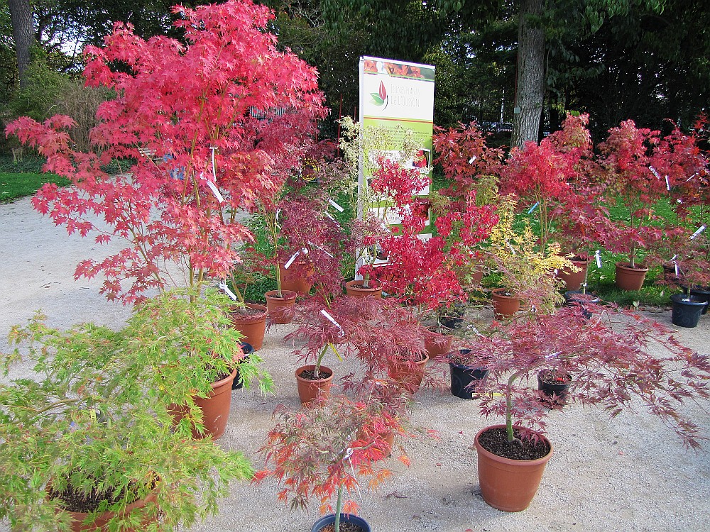 Pour ceux qui sont pas trop loin, il y a une fête des plantes ce weekend au Jardin des Plantes d'Orléans. Comme c'est souvent le cas, la plupart des stands ont quelques Acer, mais le stand le plus coloré est celui-ci :