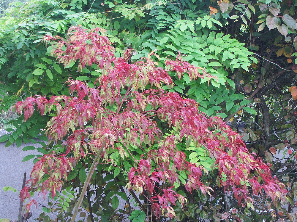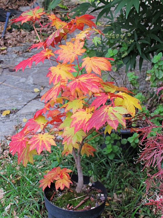 ici à part ceux en pleine terre et plein soleil qui sont bien colorés, ceux en pots ne sont pas très avancés sauf shirasawanum aureum qui s'est coloré très rapidement et dont les feuilles commencent déjà à tomber mais bon je suis contente l'automne dernier il avait perdu le feuillage avant de se colorer.