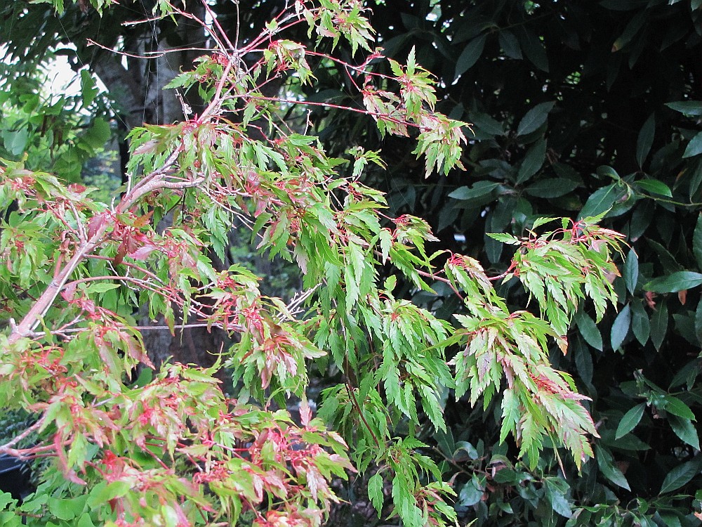 Et je l'ai légèrement palissé, à son achat il était attaché en ligne à un tuteur horzontal à côté d'autres palmatums ce qui ne permettait pas à toutes les branches de se développer normalement