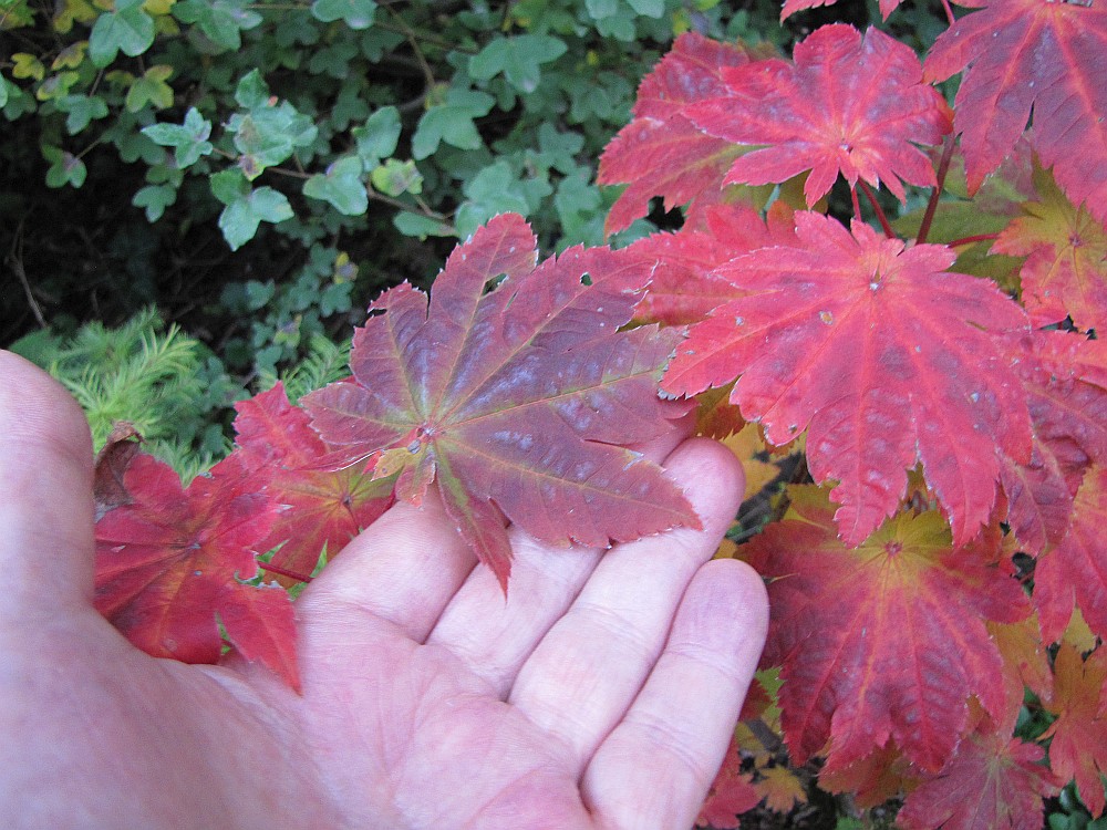 Une douzaine de graines de Acer shirasawanum 'Automn Moon'. Trois ont levées, j'ai gardé deux arbres très différents, l'un que je soupçonne d'être un hybride de shirasawanum et de palm/oenum (il y avait plusieurs cultivars tout autour)