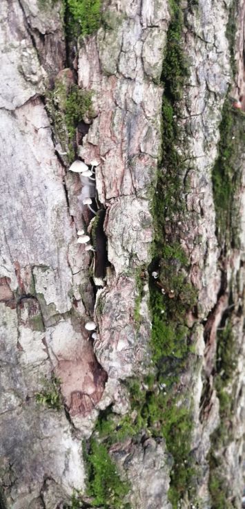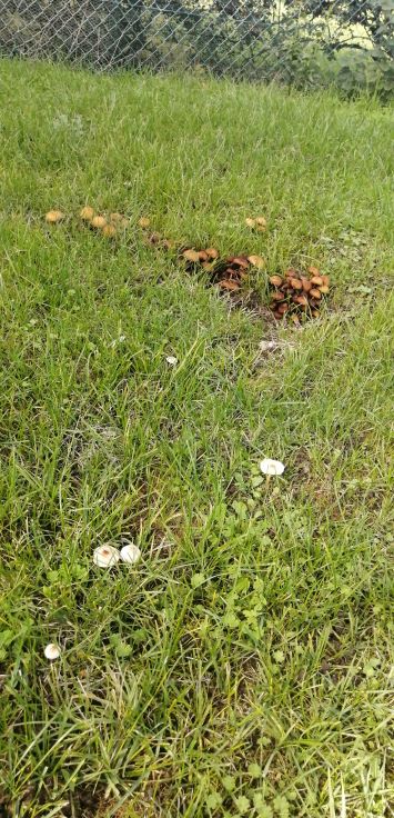 Alors, c'est tout a fait normal, plusieurs souches rases ont été laissées en terre, des arbres différents donc différents champignons et donc une multitude de visuels intéressants que voici :