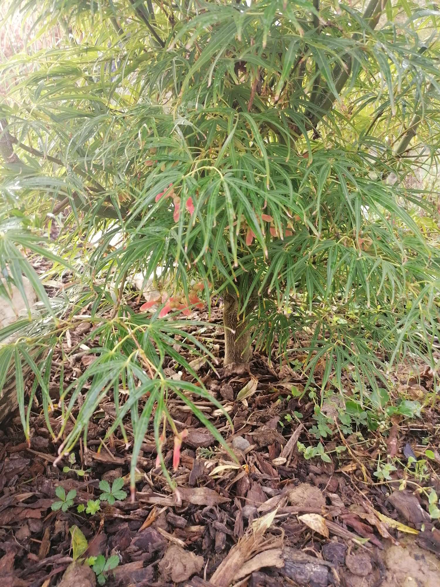 Malheureusement non, j'avais mis toutes les samares dans les bacs d'écorce compostée et ça avait bien poussé. Dans un des bacs j'avais mis tout le reste de mes graines d'Ozakazuki mais quand ça a poussé c'était hyper dense alors j'en avais rempoté une bonne partie dans des godets individuels et ce sont les seuls qui ont survécu. Ceux dans l'écorce n'ont pas résisté à l'été chaud et sec qu'on a eu dans le nord. Je pense que c'était trop drainant pour eux.