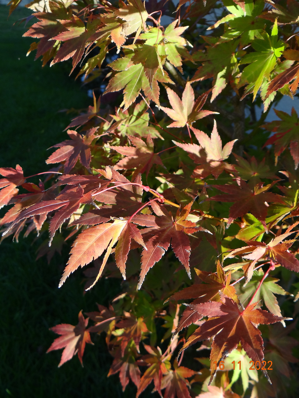 Cette année je l’ai placé à l’ombre en aout/septembre ce qui a retardé les colorations d’habitude plus précoces.