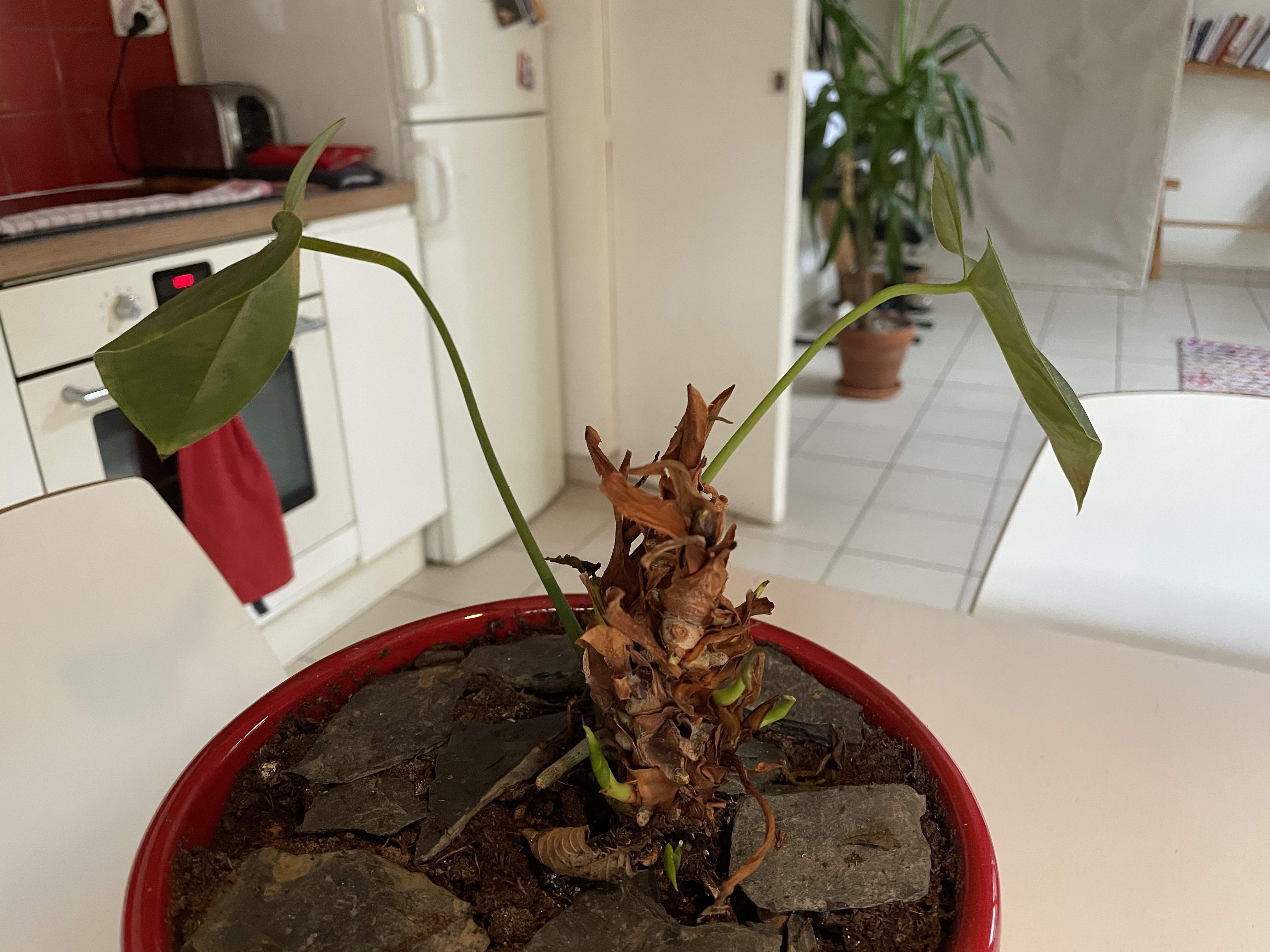 Malheureusement, presque deux mois après ma plante va de plus en plus mal... Je pense cette fois avoir bien respecté l'arrosage mais pourtant rien n'y fait... Les feuilles ont continué à jaunir puis à tomber jusqu'à ce qu'il n'en reste que deux qui je pense ne tiendront pas très longtemps...
