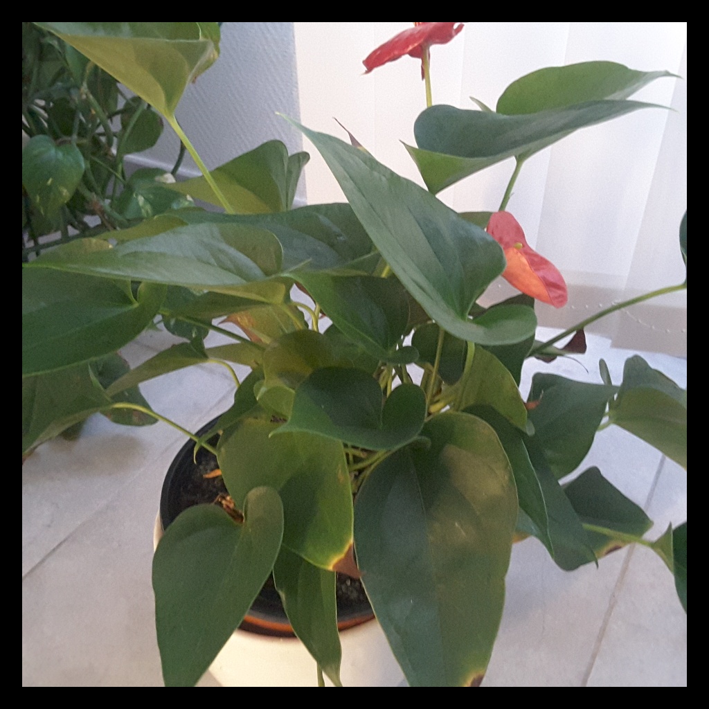 J'ai un soucis depuis un moment avec mon Anthurium... Les feuilles jaunisses et finissent par devenir marron... Même les petites nouvelles ont des tâches marrons sur le côté... ;(