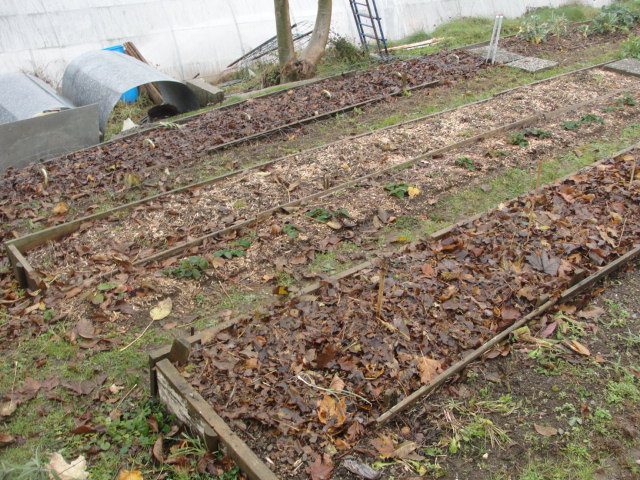 J'ai presque terminé la couverture des rectangles pour bien passer l'hiver: BRF, compost, foin, chanvre, paille, feuilles mortes, ...