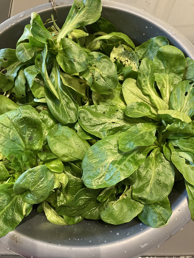 coupé 2 petites batavia pommées. Et de la mâche. Les rosettes sont super belles
