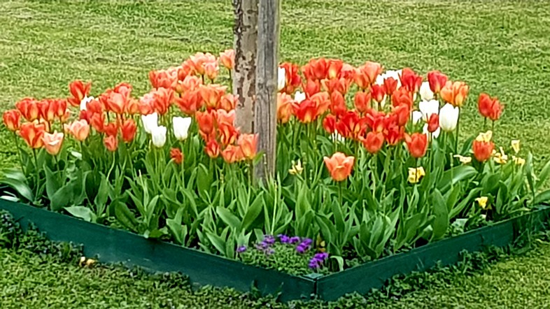 Bonjour, tout est dans le titre.. Pendant le confinement je me suis amusée à créer un minuscule "Keukenhof" (je rigole) autour d'un jeune platane. Le carré fait 1,50 m² et contient 100 bulbes de tulipes qui maintenant refleurissent chaque printemps. Après avoir enlevé le feuillage seché, je mettais des oeillets d'inde, mais j'en ai marre et j'aimerais mettre des vivaces pour avoir moins de frais et d'entretien. Ce parterre se trouve en Alsace en plein soleil toute la journée. Que me conseillez-vous? Merci
