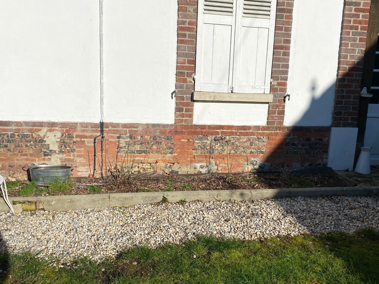 Dans le jardin de ma ma maison en Normandie il y a deux plates bandes (de part et d'autre de la porte sur la photo).