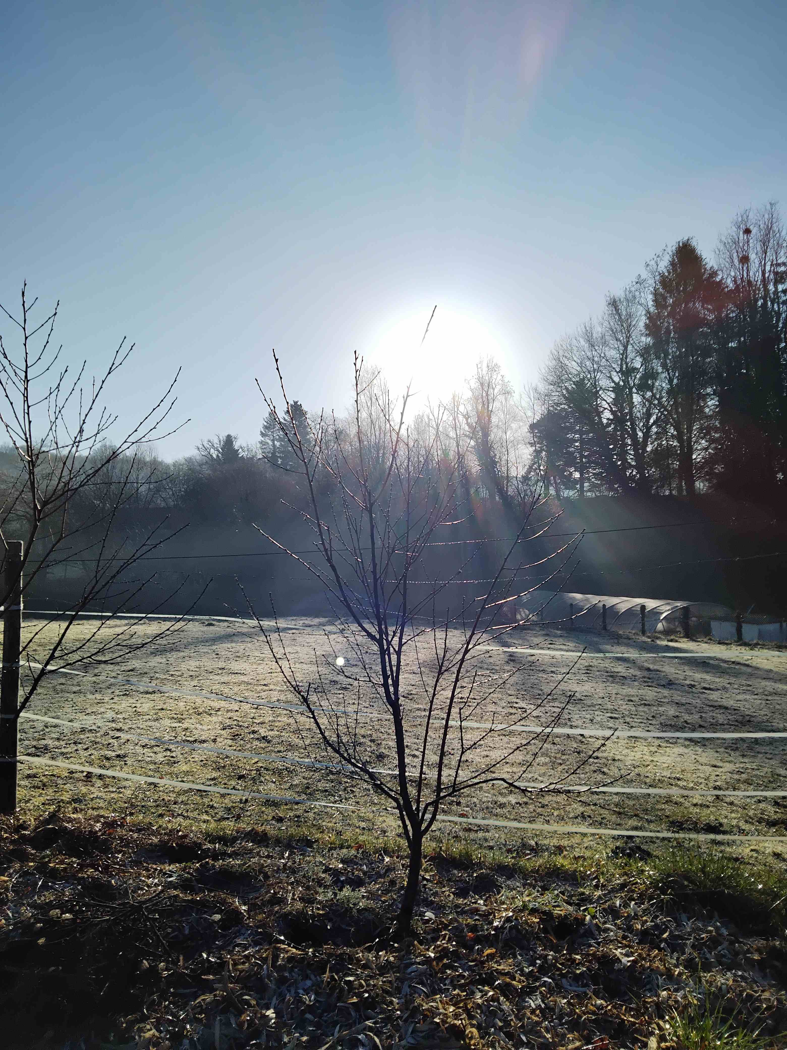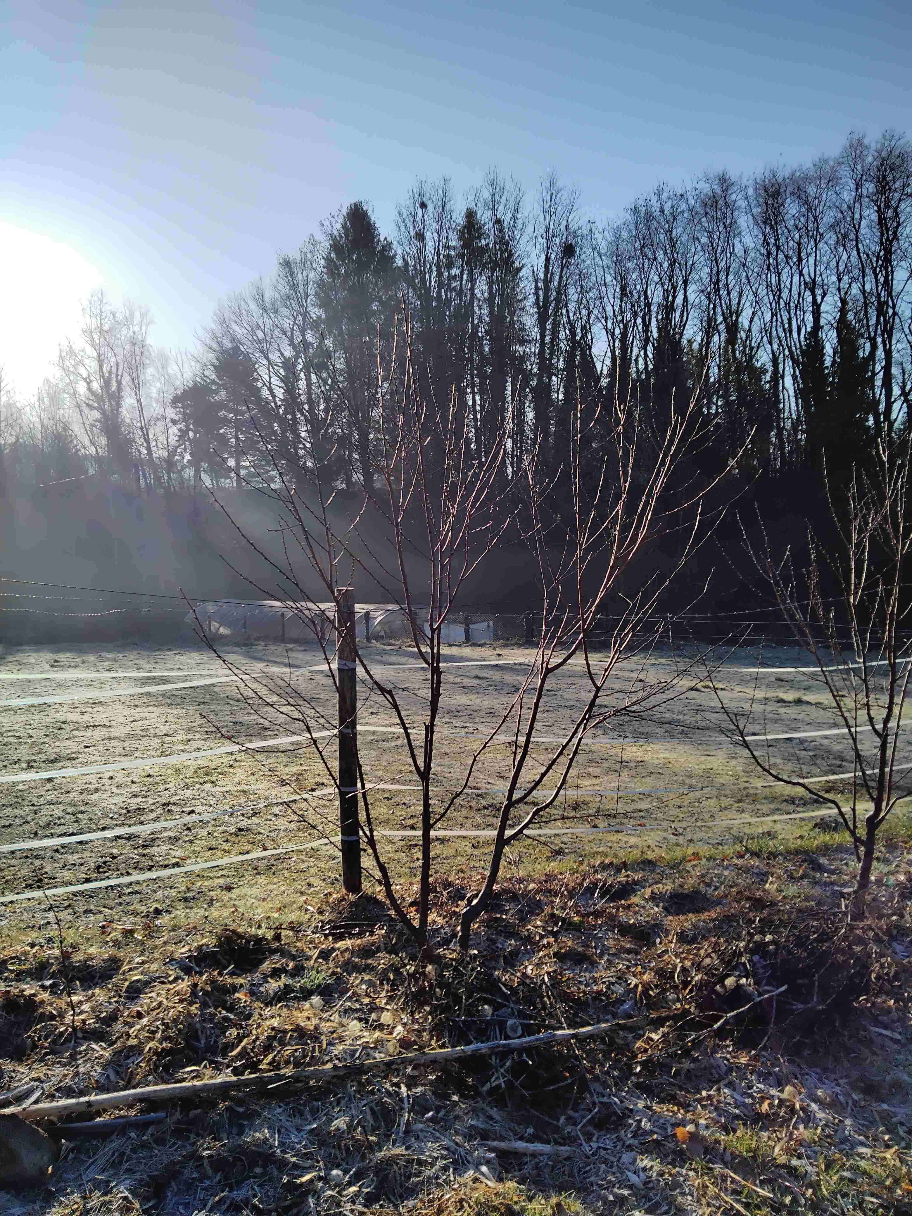 Je les ai taillés à l'automne, surtout dans l'épaisseur, pour qu'ils ne débordent pas trop dans l'allée (côté potager), ni vers la clôture (coté pature).