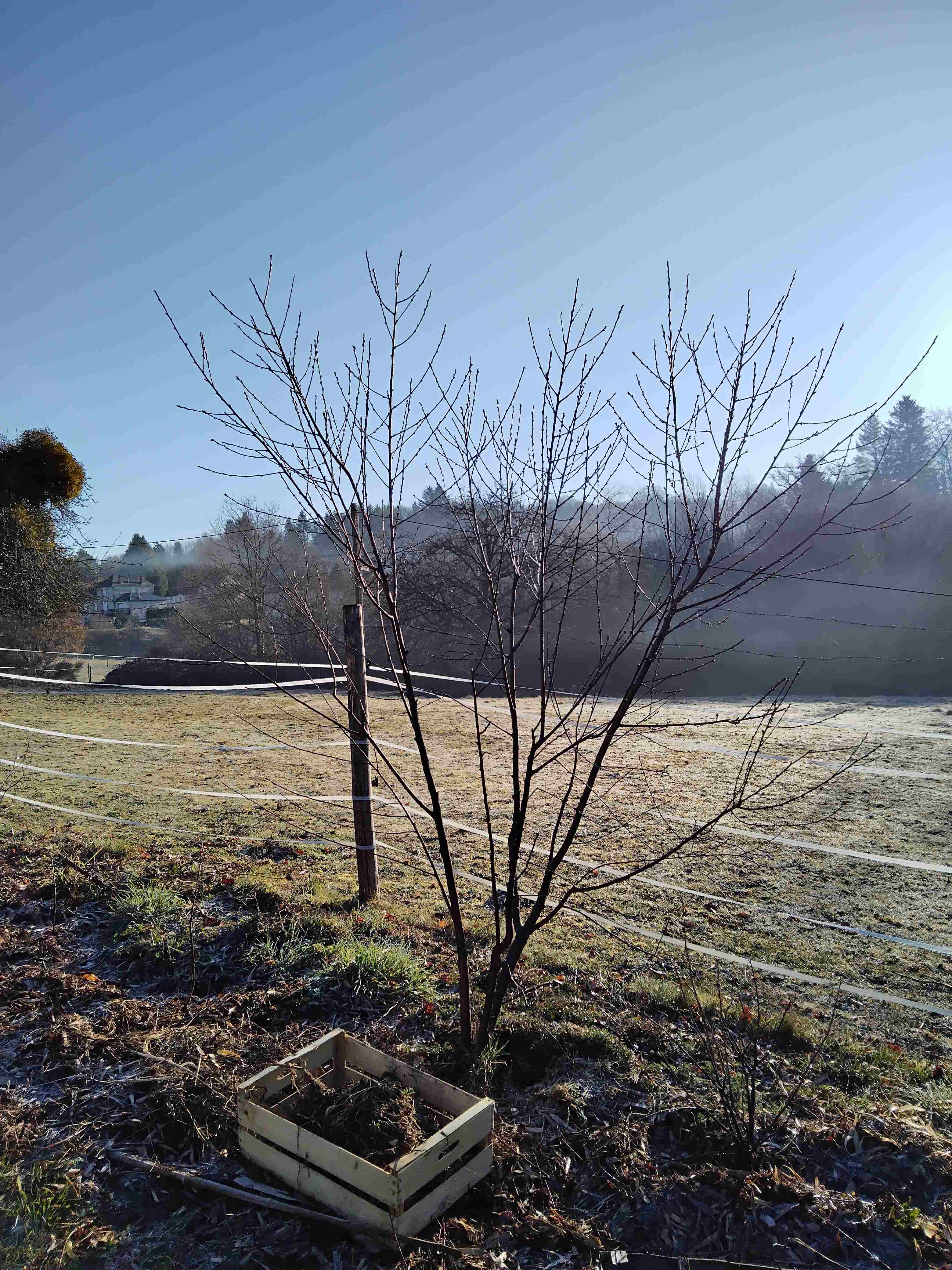 Ce sont des pêches de vigne / noyaux, plantées en haie autour du potager.