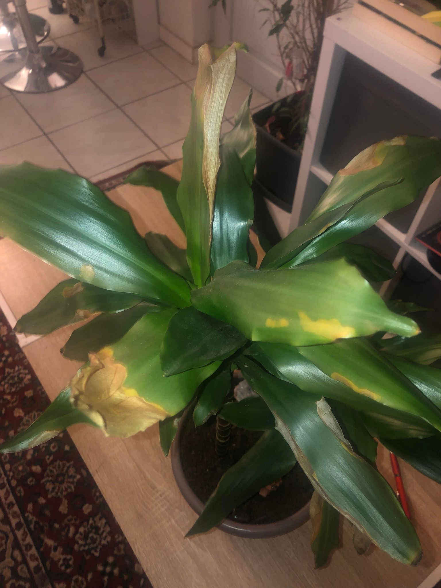 Ma Dracanea a commencé a avoir des feuilles qui jaunissent il y'a 3 semaines/1 mois. (photos en pj)