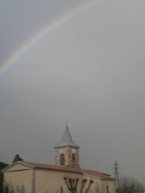il a plu une petite averse qui a bien mouillé la végétation . on a eu un superbe arc en ciel