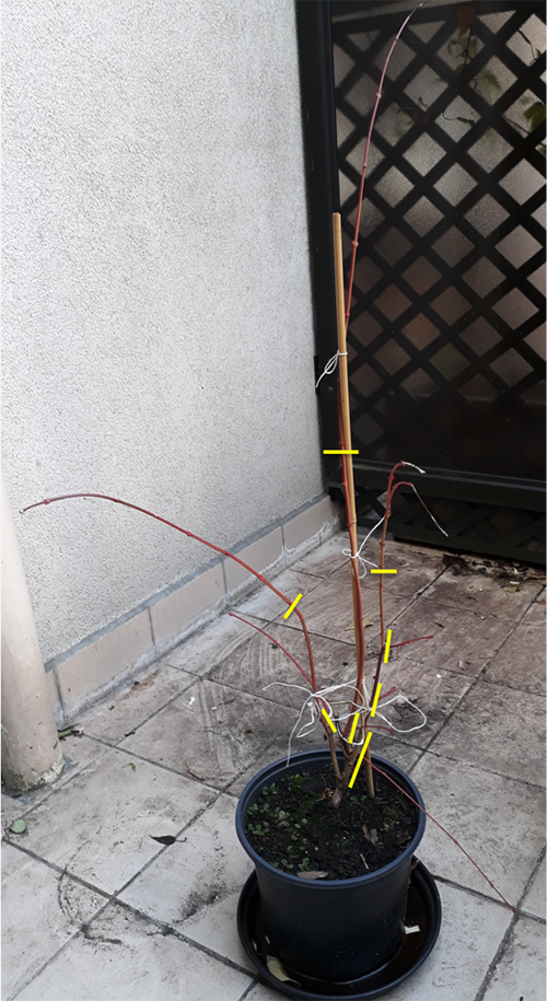 - en bas à gauche -> je ne comprends pas l'objectif de cette coupe-là. Tu coupes seulement 1 paire de bourgeons après la ramification donc que va-t-il se passer ?